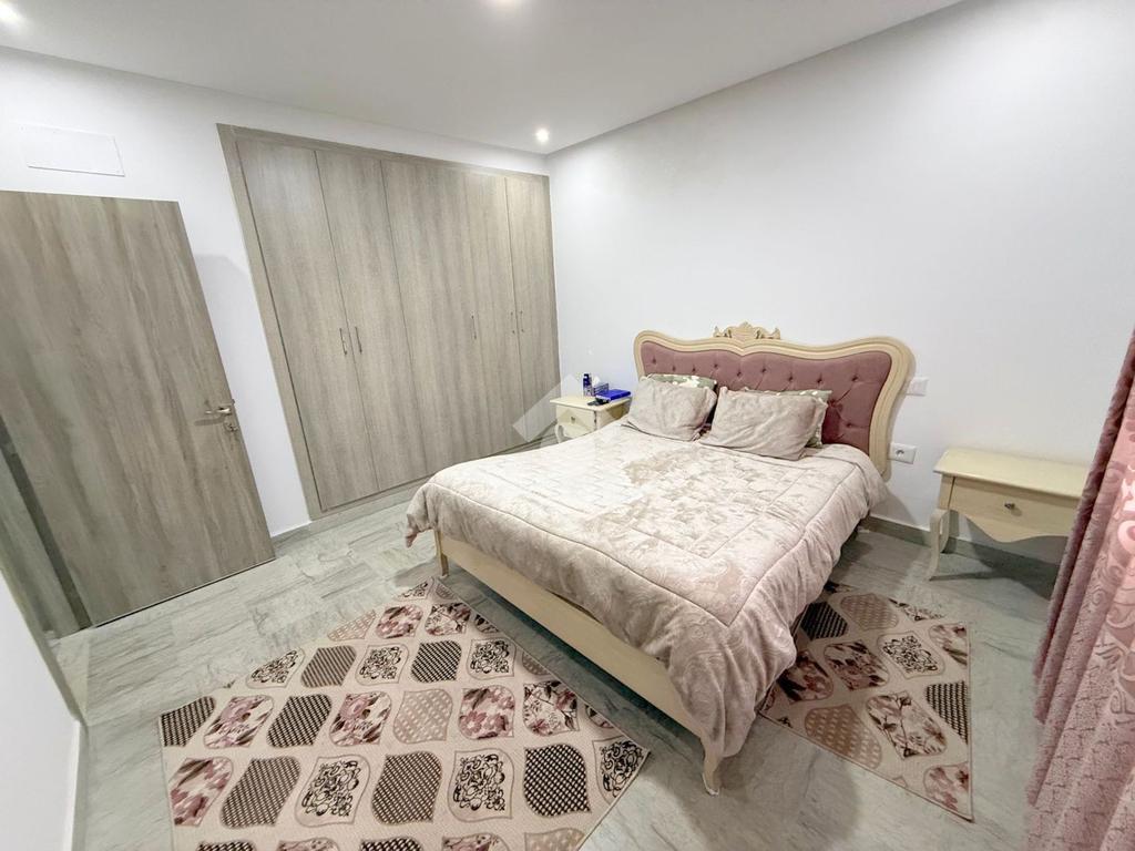Des placards intégrés offrent un espace de rangement généreux, répondant à tous vos besoins de stockage.