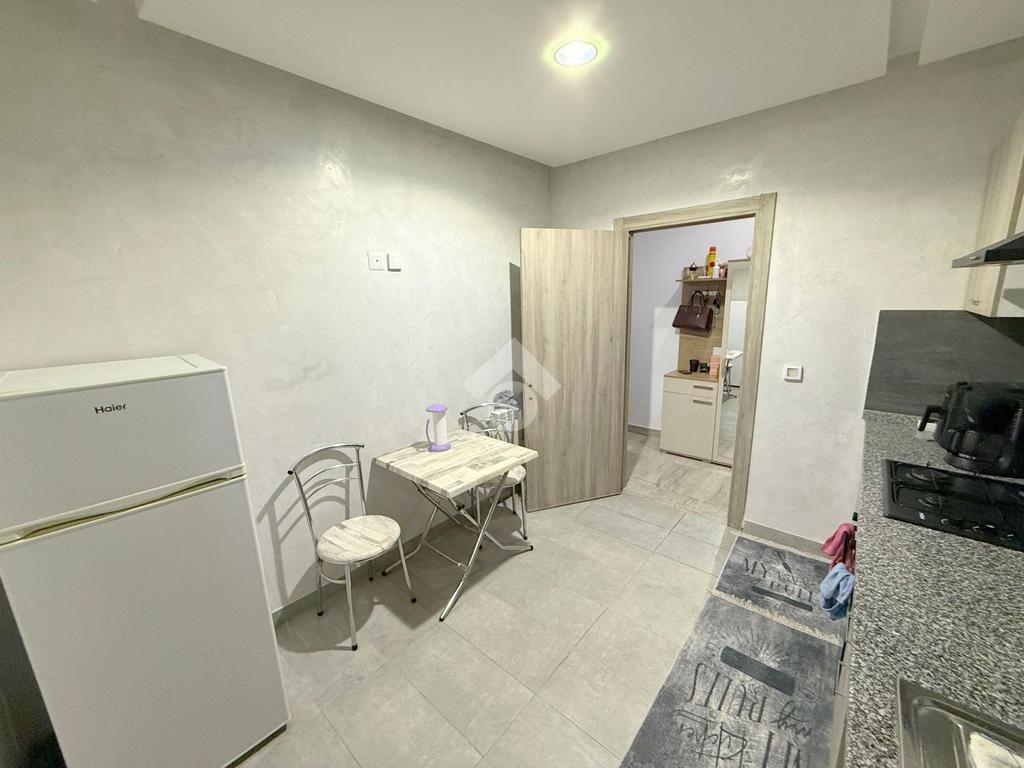 La cuisine, entièrement agencée et équipée, comprend une plaque de cuisson, une hotte aspirante et un four électrique. Elle donne également accès à un séchoir pratique pour plus de commodité. De plus, un point d'eau est prévu pour les invités.